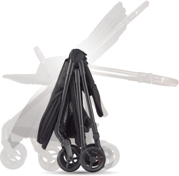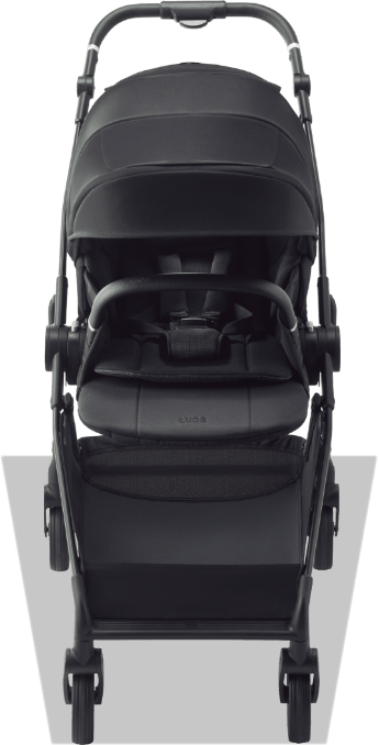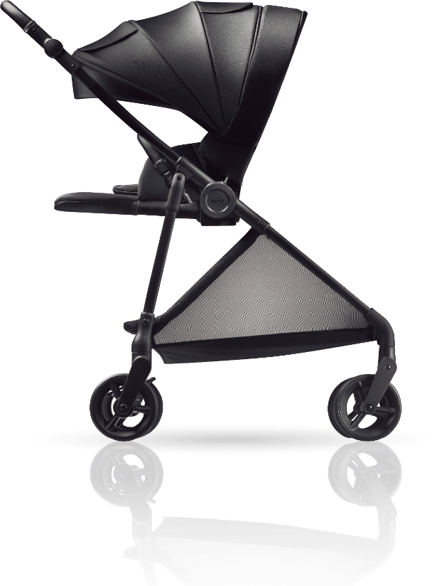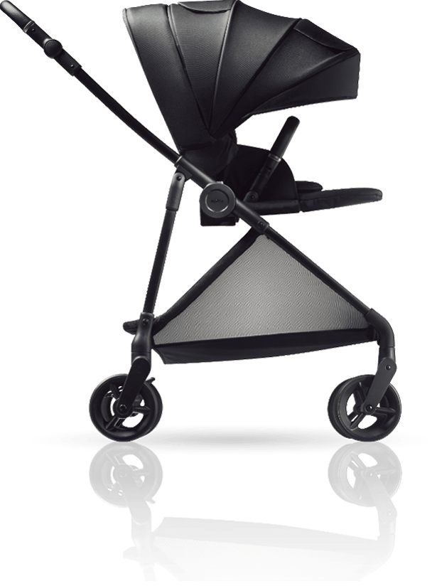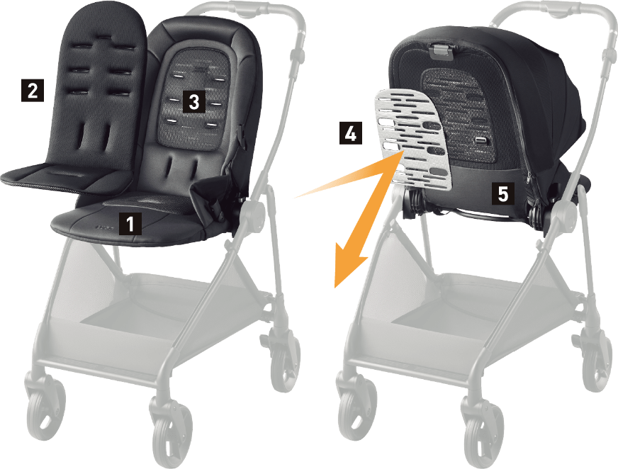 対面と背面との切り替えは、ハンドルの向きを切り替えるのではなく、座席を持ち上げて座席の向きを変えます。そのため対面でも背面でも、フレームの構造に変化が生じず、力がロスなくまっすぐ車輪に伝わるので押しやすくなります。また座席がはずせるのでトラベルシステム対応※1チャイルドシートにもつけ替えることができます。
