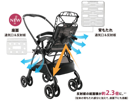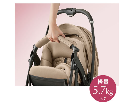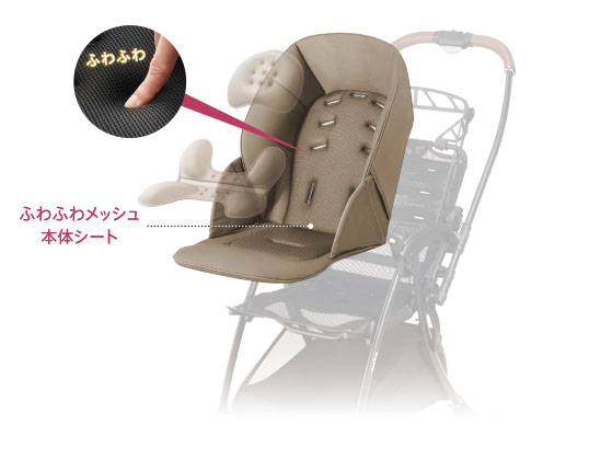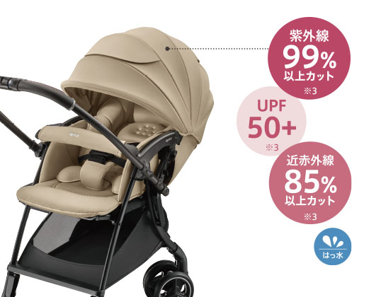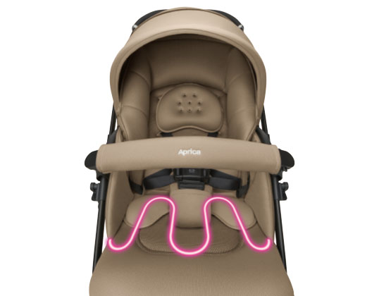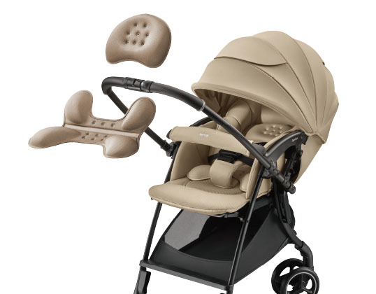 生まれたばかりの赤ちゃんでも安心してお出かけできるよう、快適な乗り心地を追求した機能が充実。