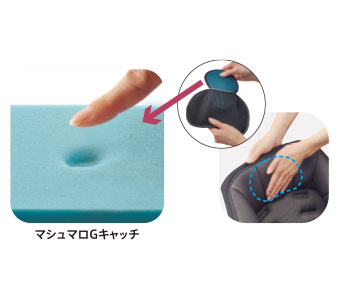 高密度の衝撃吸収材「マシュマロGキャッチ」で頭部への衝撃を吸収。