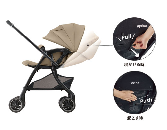 成長や「その時」の状況で赤ちゃんに最適な姿勢は変わるから、ちょうどいい角度に簡単リクライニング。