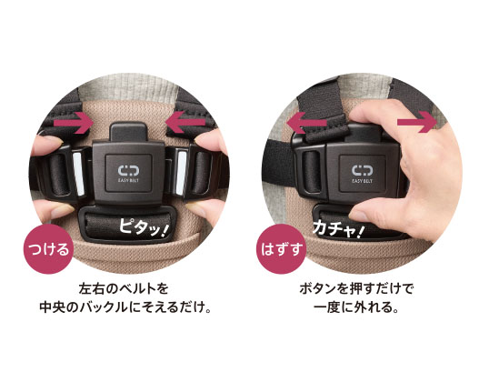 マグネットの力でパッとくっついて、パッと離れるから、厄介なベルトの着脱が簡単、スピーディーに。