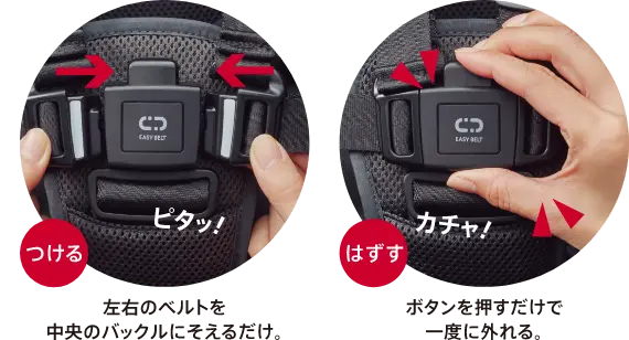 ママにも赤ちゃんにも、笑顔が拡がる。ラクーナ クッションの2つのイノベーション。 リクライニングを調整したり、乗せ降ろししたり、そんな 日常的な動作をストレスなく、赤ちゃんも安全・快適に。 ママも赤ちゃんもスマイルになる、ラクーナ クッションならではの画期的な2つの機能です。 赤ちゃんの様子を見ながら、片手で簡単リクライニング。いつでも好きな角度にしてもらえて赤ちゃん快適。 ベルトの付け外しがマグネットの力でパッと簡単、お出かけがスピーディーに。乗り降りがさっとできて、赤ちゃんゴキゲン。