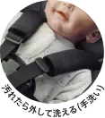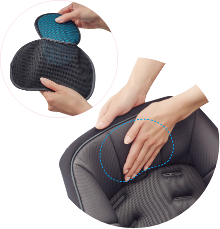 ココチよくお出かけしてほしいから。ベビーファーストクラスな独自のシート構造。 1姿勢サポートパッドをそなえたメッシュ本体シート 中の素材は通気性とクッション性を両立したシルキーエアー。取り外して洗える※6ので、いつも清潔に保て、肌トラブルの原因となる汗や雑菌から赤ちゃんを守ります。 ※6:液温30℃を限度とし、洗濯機の弱水流で洗ってください。乾燥機のご使用はお控えください。 メディカル成長マモール特許 首・腰すわり前の赤ちゃんの頭と腰を安定させ、負担の少ない快適な姿勢を保ちます。 2背中からお尻まで通気性があり快適メッシュベースシート 4カンタンに外して洗えるエアーシート(付属品) 本体シートの上にさらに一枚メッシュシートを追加し、極ふわな乗り心地を実現。中の素材は通気性とクッション性を両立した「シルキーエアー」。カンタンに外して洗濯機で丸洗いできる※7から、いつも清潔に保て、肌トラブルの原因となる汗や雑菌から赤ちゃんを守ります。 ※7 :洗濯ネット使用、ねじり又は絞り禁止。 ※ エアーシートはラクーナ クッション フリー プラスのみ 3風を通し熱をカットするWサーモメディカルシステム 背もたれに設置された通気口が風を通し、反射板が路面の反射熱を跳ね返して座席の温度上昇を防ぎます。 *画像はイメージです。