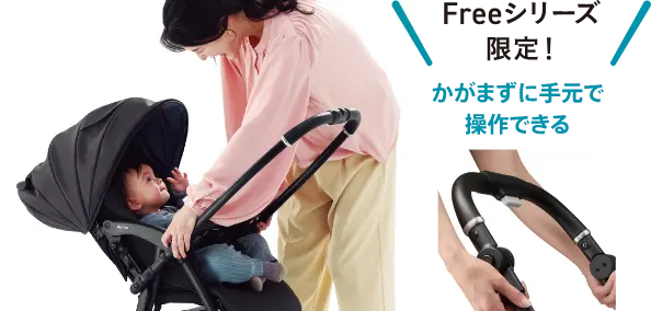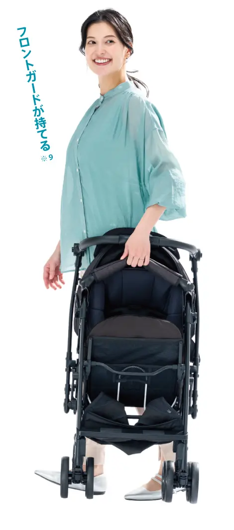 お出かけの負担を減らす。ママのカンタン&ベンリのために。 持ち運びラクラク軽量5.5kg※8 ※8:ラクーナ クッション フリー プラスは5.8kg(付属のエアーシートを除く) ※9:折りたたみ状態時に限る。 赤ちゃんを乗せたまま背面にも対面にもハンドル切り替えタイプ 両対面 先輩ママからのコメント 『ハンドル切り替え、どんな時に便利だった?』 対面でもスイスイ押しやすいオート4輪 進行方向に対して常に前輪がフリー・後輪がロック 片手でパッと折りたたみできるワンタッチ開閉 バックルがくっついて乗せ降ろししやすいマグネットホルダー 大容量で前からも出し入れフロントイン・ビッグバスケット ※10:座面下空間容積 *画像はイメージです。