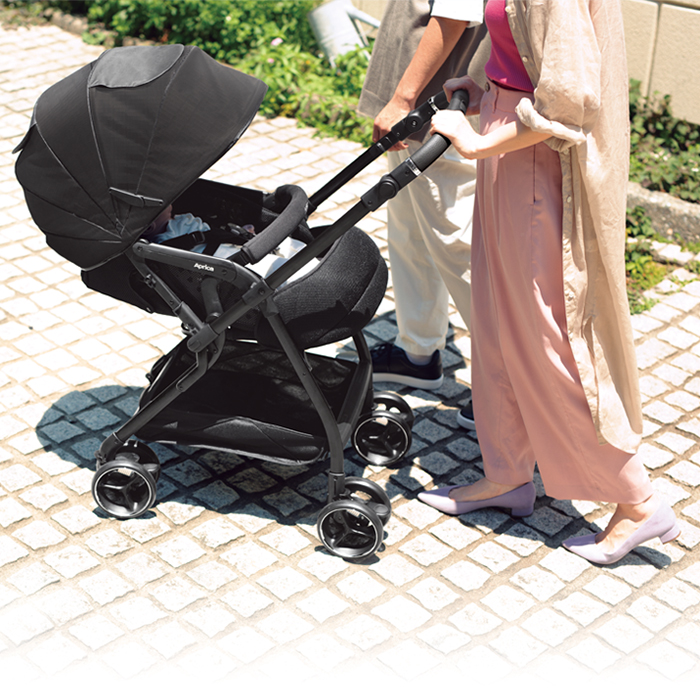 生まれたばかりの赤ちゃんでも安心してお出かけできるよう、快適な乗り心地を追求した機能が充実。