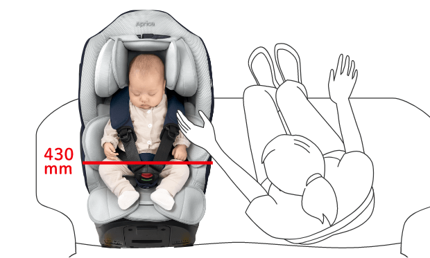 コンパクト設計で車内ひろびろ 横幅を430mmに抑えたコンパクト設計なので、軽自動車やコンパクトカーでも、場所を取らず同乗者の方もゆったり座れます。扱いやすい大きさだから、ママにもラクラク使えます。 コンパクト設計なのに赤ちゃんにやさしいベッド型