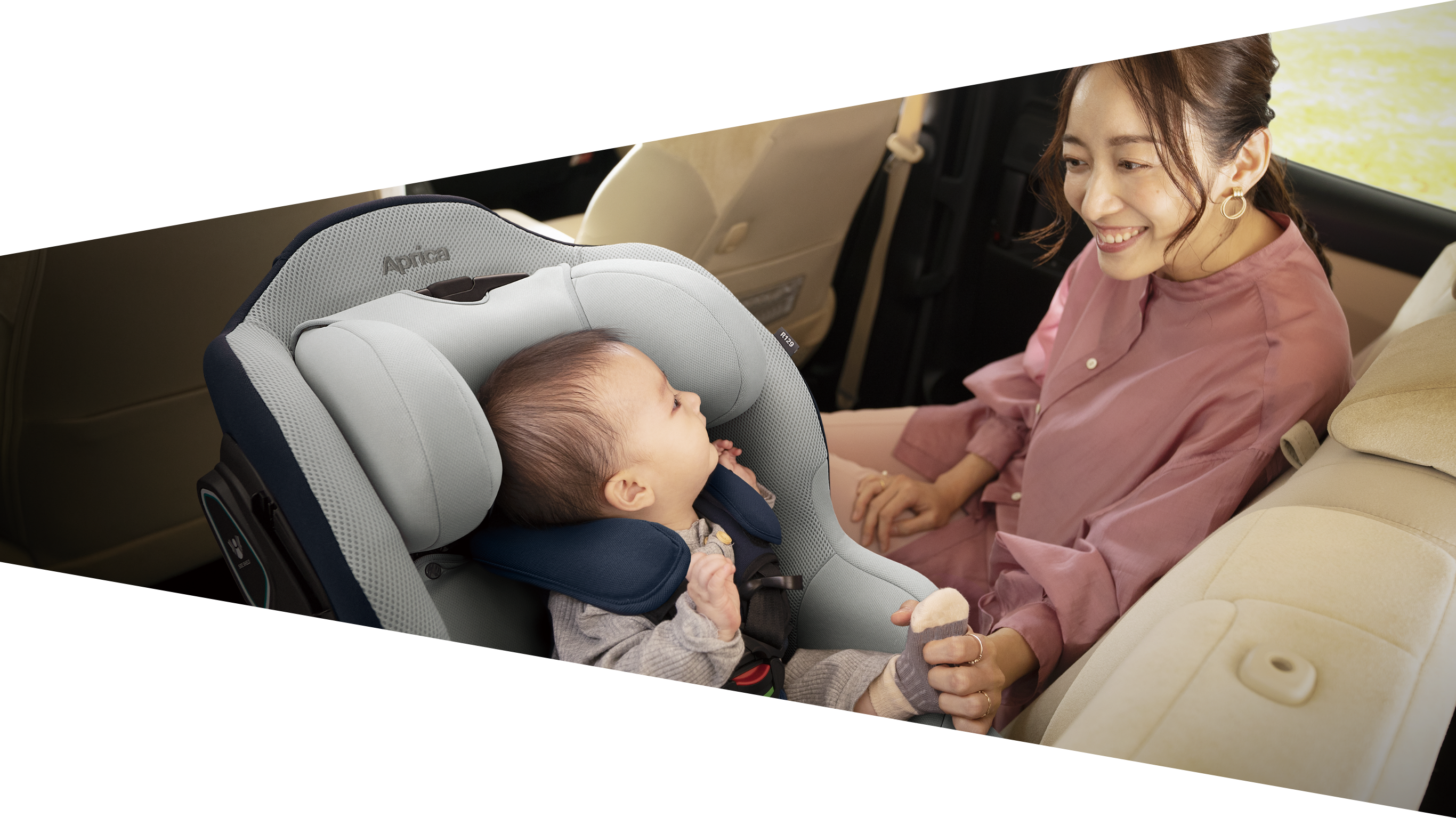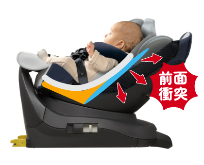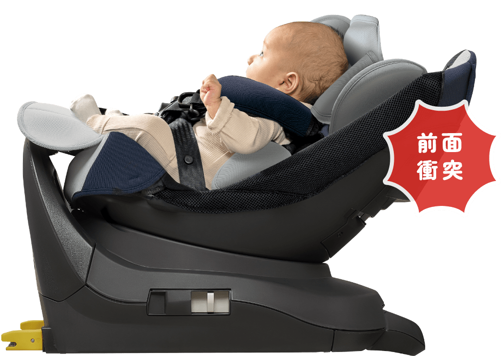 スーパーWマモールクッションもしもの時は、カタチが変わって衝撃を分散 もしもの時には、腰が沈み込み、背中の角度が変わります。クッションが圧縮され、背中の広い面で衝撃を受け止めて分散し、赤ちゃんを守ります。※2 *特許出願中 最新の安全規則R129※1に適合 側面衝突試験を新たに加えるなど、さまざまな視点から高度な安全性が検証されています。 サイドシールドでドア側の衝撃から守る 両サイドに装備された頑丈なプロテクターで、ドア側からの強い衝撃を軽減します。 フットサポートで足の巻き込みを防止 後ろ向きに回転するときに赤ちゃんの足が巻き込まれるのを防ぐので安心。足を乗せるとフットレストとしても使えます。 ※1 UN規則No.129(改良型幼児拘束装置)※2 スーパーWマモールクッションは身長60㎝未満まで有効です。*画像はイメージです。 R129について詳しく※1 UN規則No.129(改良型幼児拘束装置)※2 スーパーWマモールクッションは身長60㎝未満まで有効です。*画像はイメージです。