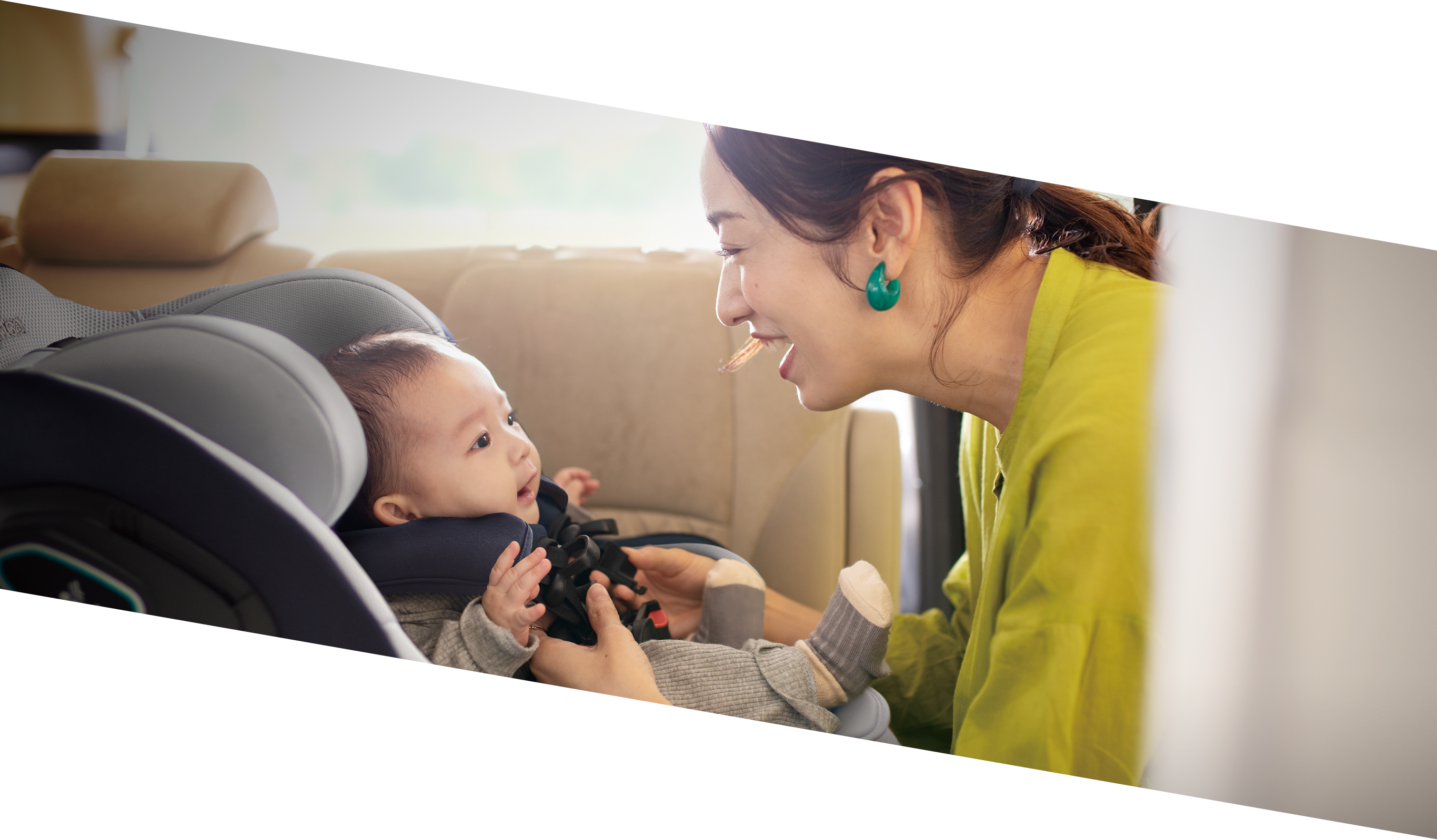 肩ベルトが開いたまま止まる画期的な「ラクラクオープン肩ベルト」 肩ベルトが開いた状態でキープできるので、肩ベルトがじゃまにならずスムーズに乗せおろしができます。*特許出願中 サッとベルトを緩められる「ラクラク調節肩ベルト」で乗せおろしがラクラクに 日本初※4肩ベルト引き出しリングを搭載。リングを引っ張るだけで、スッと肩ベルトを緩めることができます。*特許 イージーべルトでベルト装着が更にスムーズに マグネットの力でタング同士がくっつくので、急いでいるときや赤ちゃんがぐずっている時でもサッと装着できます。 ※4 国内で販売されている新生児から使えるチャイルドシートにおいて2021年7月現在。当社調べ。*画像はイメージです。