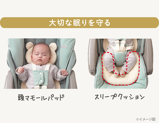 限られた車内スペースでも、自然な姿勢でリラックスでき、赤ちゃんをしっかり守る。