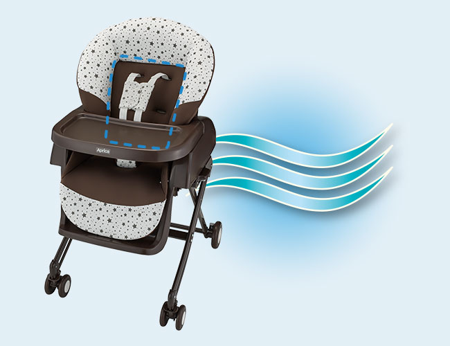 背もたれに通気孔があり汗っかきの赤ちゃんも快適。