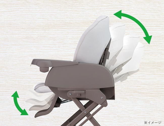 リクライニングとステップが連動しているから赤ちゃんの様子や成長に合わせて、片手でいつもサッと快適な姿勢にしてあげられます。