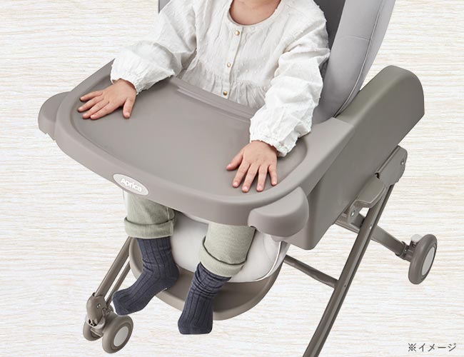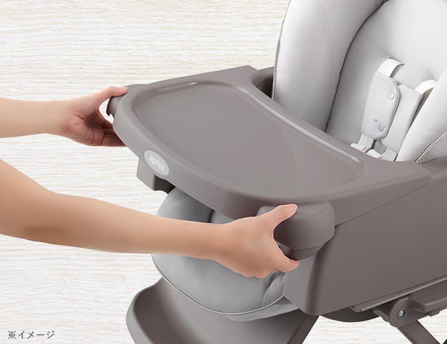 テーブルを赤ちゃんに近い位置にセットできる設計だから食べこぼしが少なくすみます。テーブルの位置は成長に合わせて3段階に調節できます。