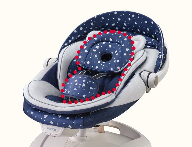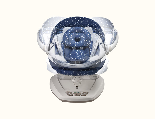 ママが赤ちゃんを抱っこするような、左右に揺れる優しいスウィングで赤ちゃんの気持を落ちつかせ、心地よい眠りを誘います。赤ちゃんの状態に合わせてスウィング幅は5段階、リクライニングは2段階で調節できます。