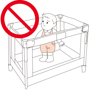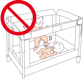● お子さまがつかまり立ち出来るようになった場合、(概ね出生後5カ月以上)、床板を下段にし、上さん(上枠)までの高さが60cm以上となる状態で使用すること。