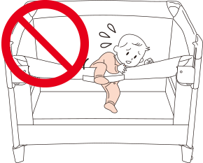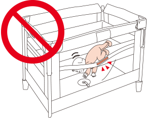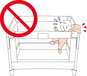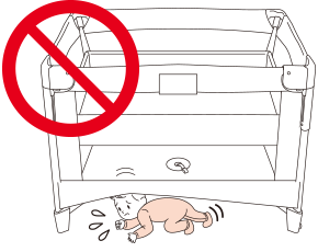 ● ベビーベッドの下にお子さまをもぐり込ませない。