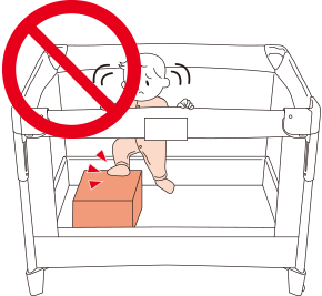 ● 本製品の外側および内側には、お子さまが足をかけるようなものを置かない。