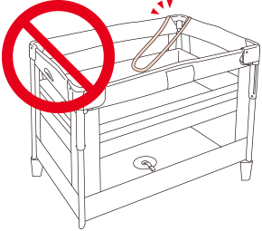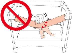 ● 上さん(上枠)や支柱などに、お子さまの衣類、ひもやフードなどが引っかからないように注意する。