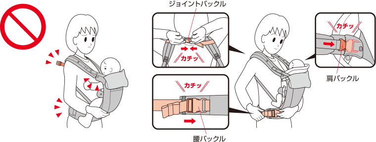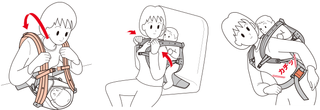 赤ちゃんといっしょにどこへでもいける。対応のベビーカーと組み合わせるとさらに快適に。
